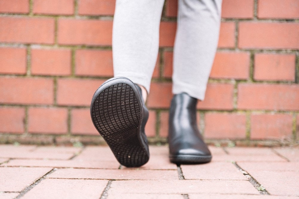 Gumová podrážka s nulovým pätom, čím sa zmierňuje chrbticu a chráni kĺby, podporuje prirodzené držanie tela