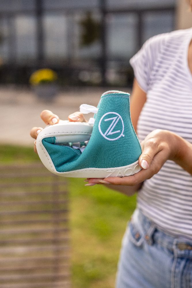 Vyrobené z tyrkysovej modrej džínsoviny, ponúkate nielen čerstvý, nápadný dizajn, ale aj všetky výhody topánky naboso. S bielym čiapkou na nohách a bielymi šnúrkami vyzerajú športovo a zároveň moderne.