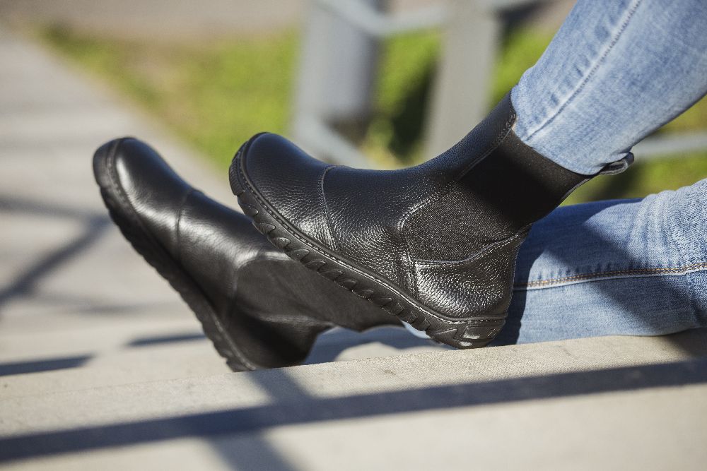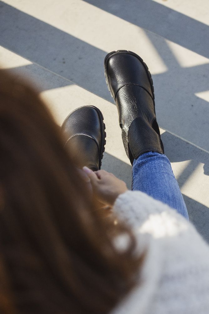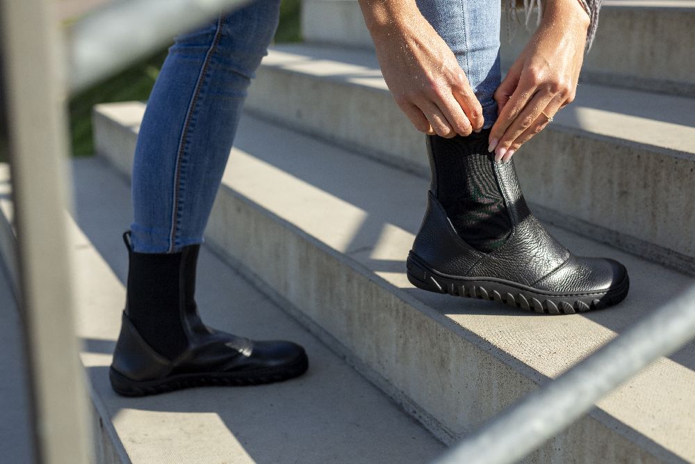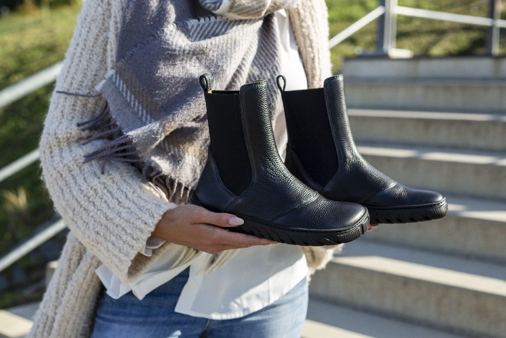 Tieto topánky kombinujú pohodlie bosých topánok s nezameniteľným štýlom klasických topánok Chelsea. Držané v elegantnej čiernej farbe a vyrobené z vysokej kvalitnej kože nappa, nielenže ponúkajú luxusný pocit opotrebenia, ale aj trvanlivosť.