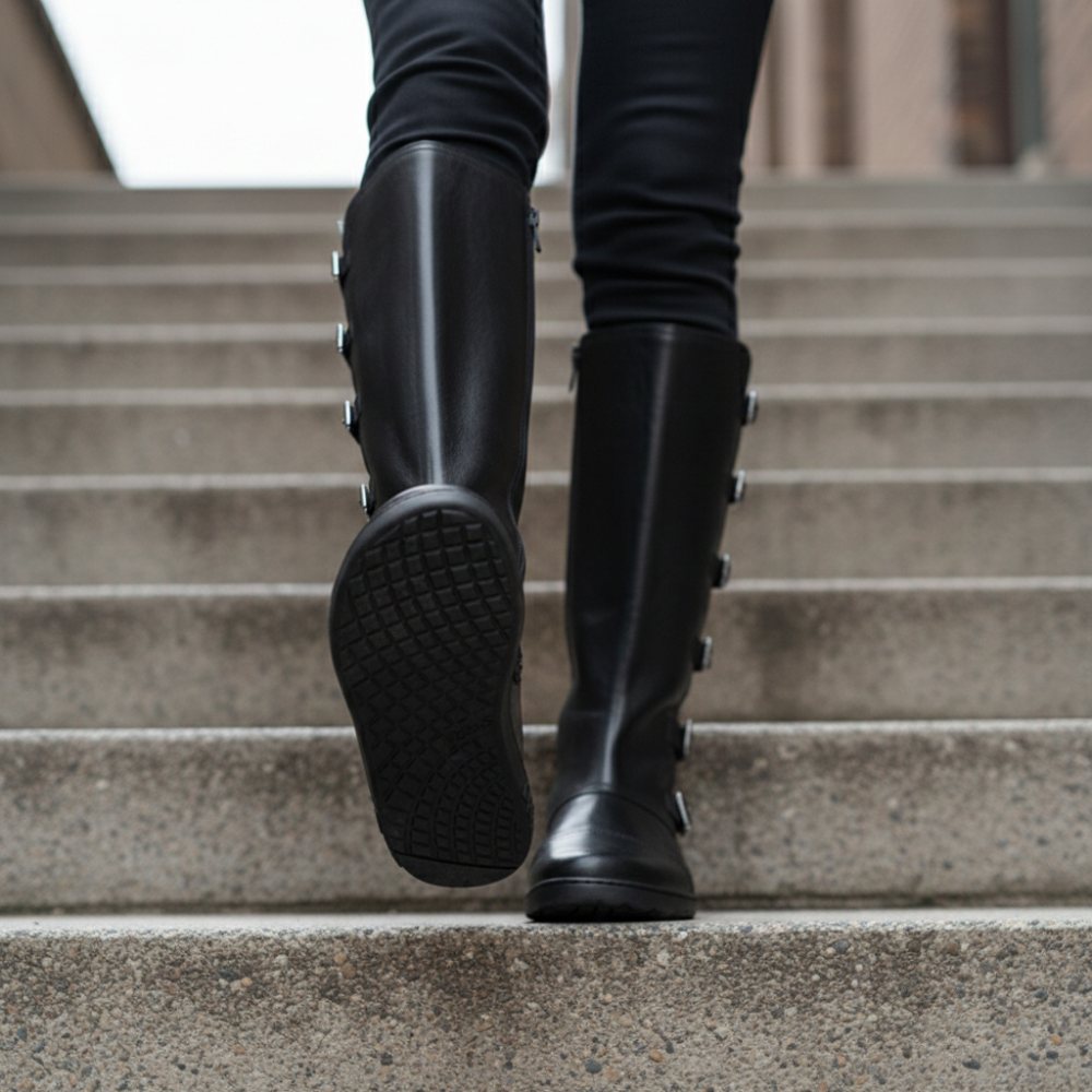 Gumová podrážka s nulovým pätom, čím sa zmierňuje chrbticu a chráni kĺby, podporuje prirodzené držanie tela