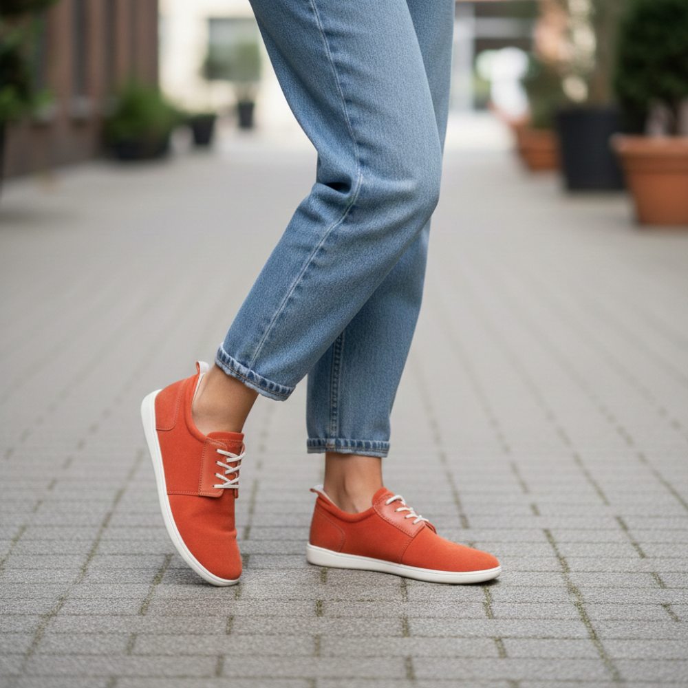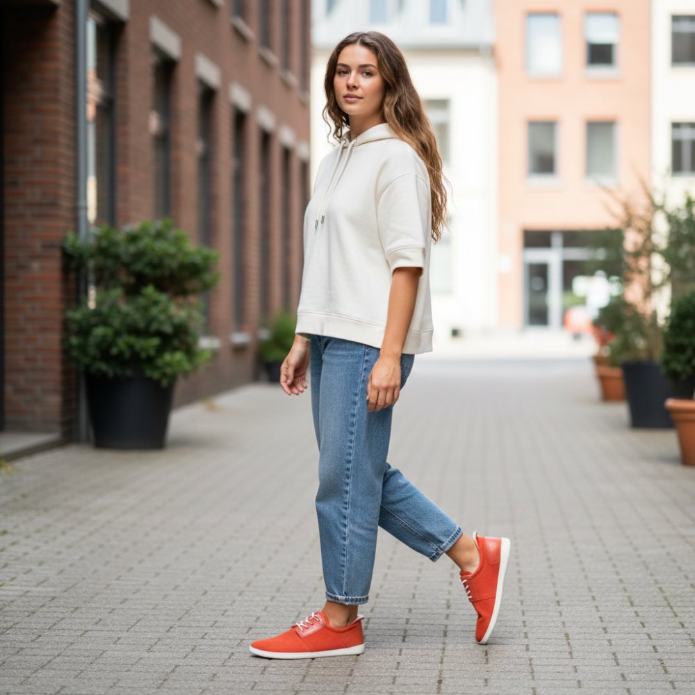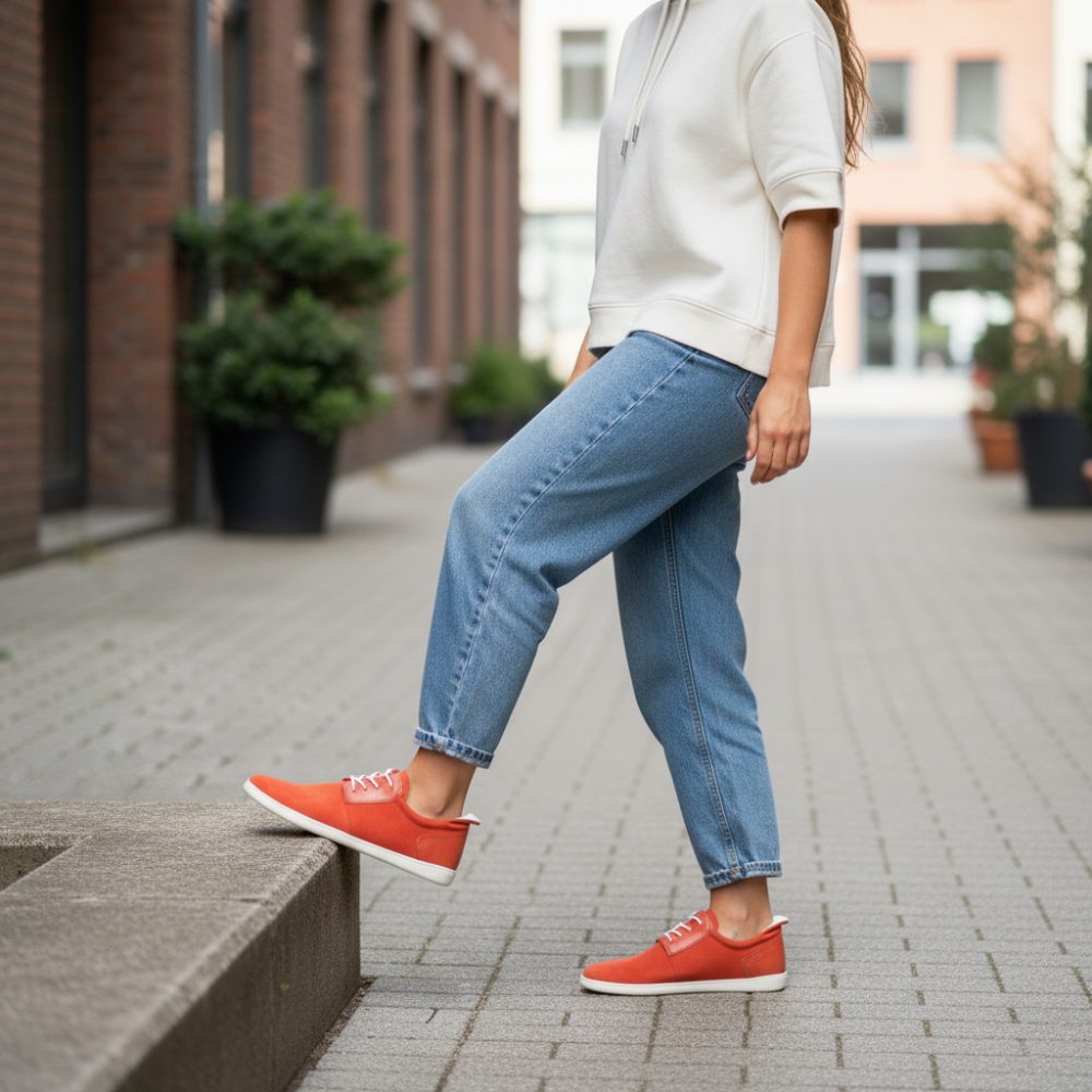 Všetko o topánke naboso je vyrobené z materiálov vysokej kvality a je samozrejme ručne šité. Pri bielej farbe ponúka tenká a vysoko flexibilná podrážka pekný kontrast k nápadnému oranžovému tónu. Bosá topánka vyzerá sviežo a moderne a korene každé oblečenie. Vyzerá len neodolateľne pre džínsy a priťahuje pozornosť seba. Nie je to pikantnejšie ako v opále!