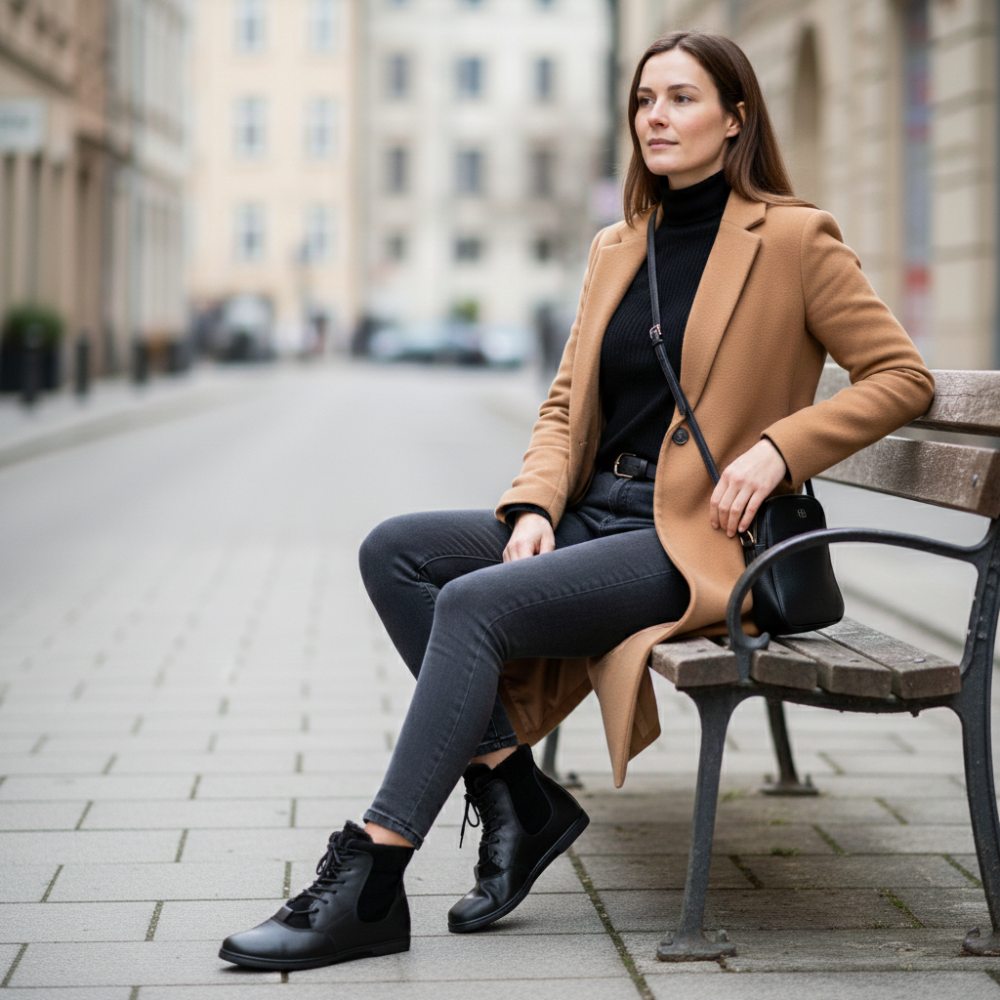 QARIB Winter Black verbindet eleganten City-Look mit vollwertigem Barfußkomfort. Das tiefschwarze Leder-Mix-Design wirkt schlank und edel, innen wärmt ein weiches Futter angenehm ohne aufzutragen.