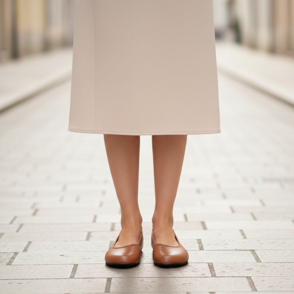 Du suchst einen simplen Ballerina, der feminin aussieht und aus 100% veganen Materialien gefertigt wurde? Hier ist er, unser QARMA Vegan Cognac.