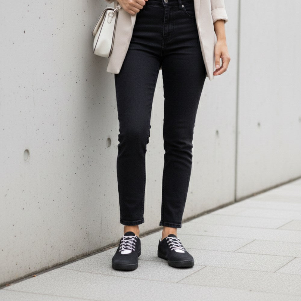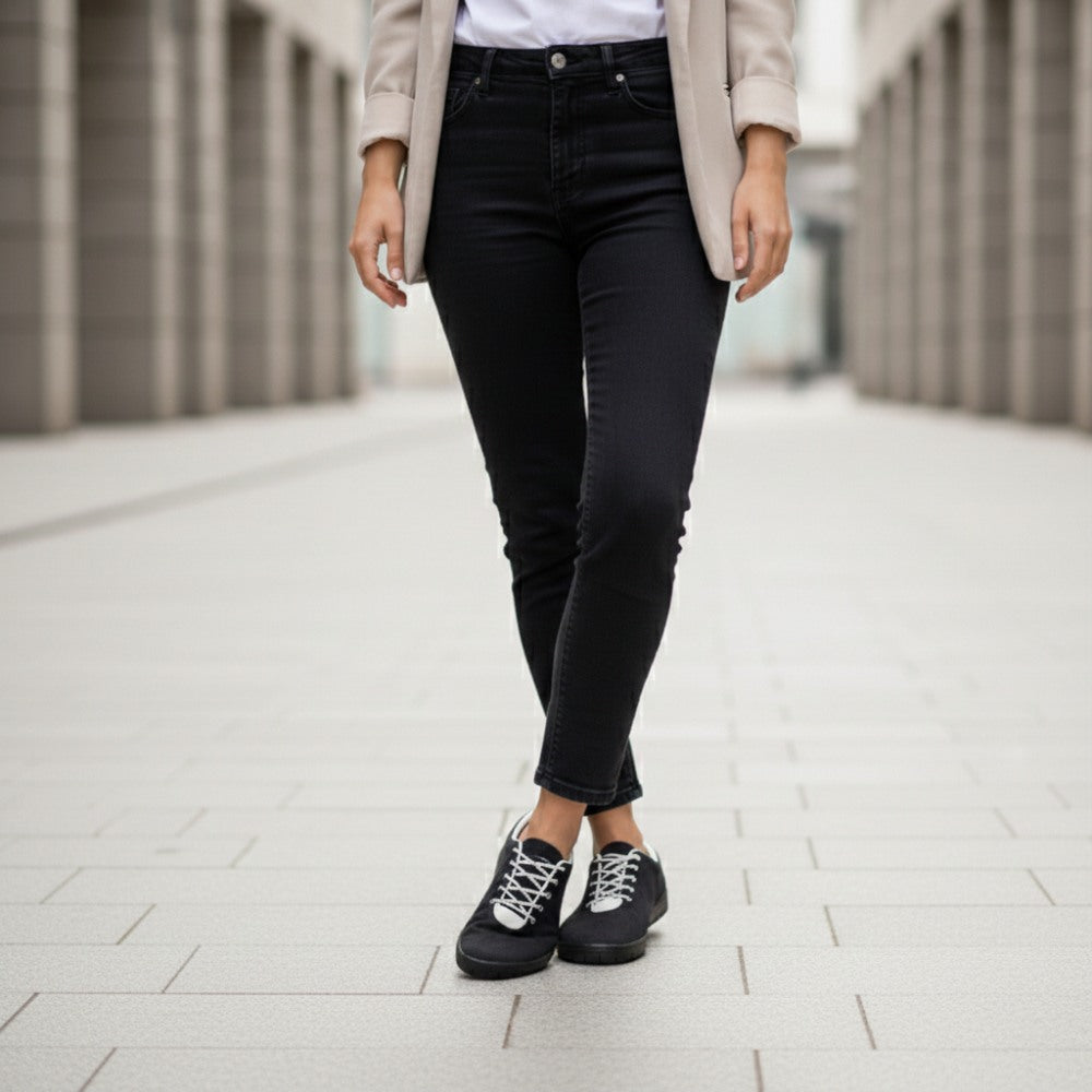 Ja, es kann - mit dem Modell QARO Black White! Der schicke Sneaker aus schwarzem Obermaterial und mit weißen Details versehen, ist ein absolutes Must-have für Deinen Schuhschrank. Die typische Kautschuksohle, hoch flexibel und besonders anschmiegsam, macht diesen Barfußschuh zu einem perfekten Alltagsbegleiter. Das Material ist atmungsaktiv, schweißreduzierend und damit optimal auch für die wärmeren Monate geeignet.