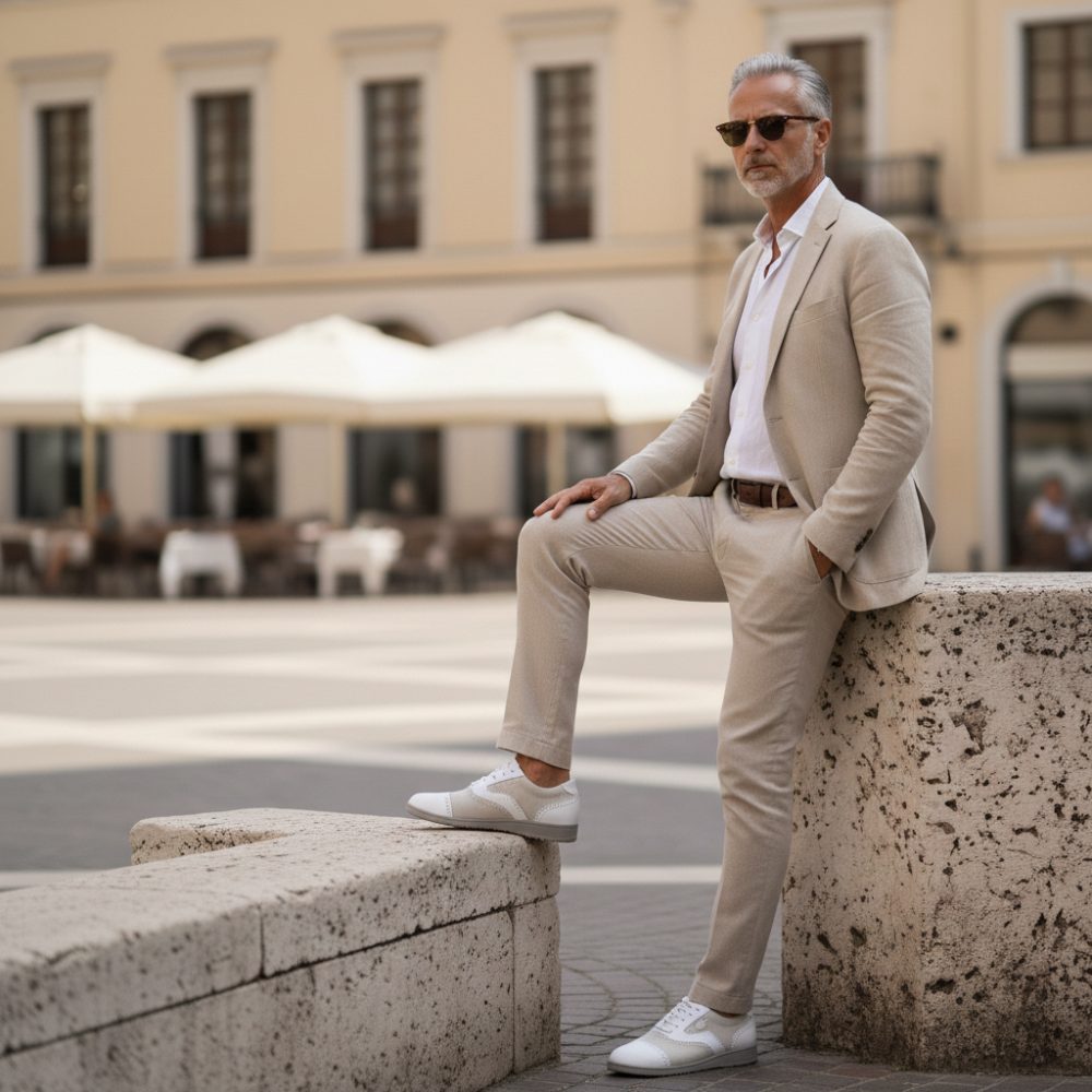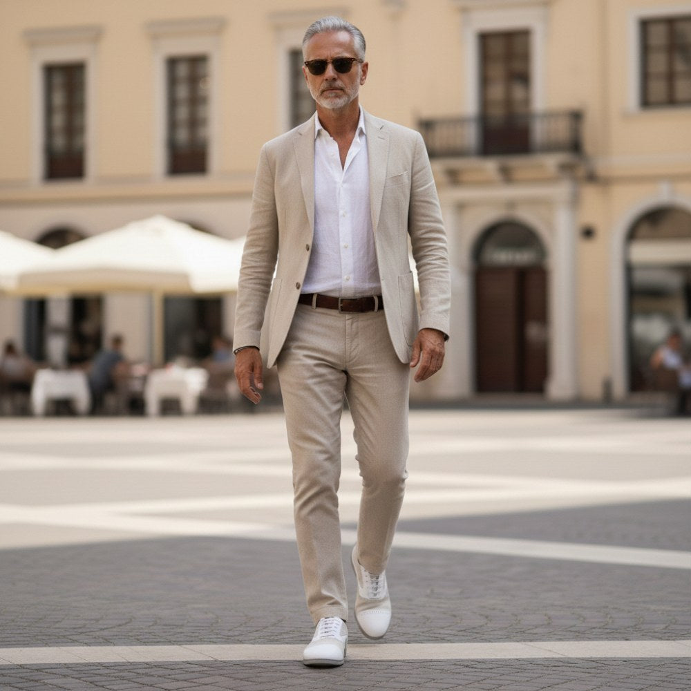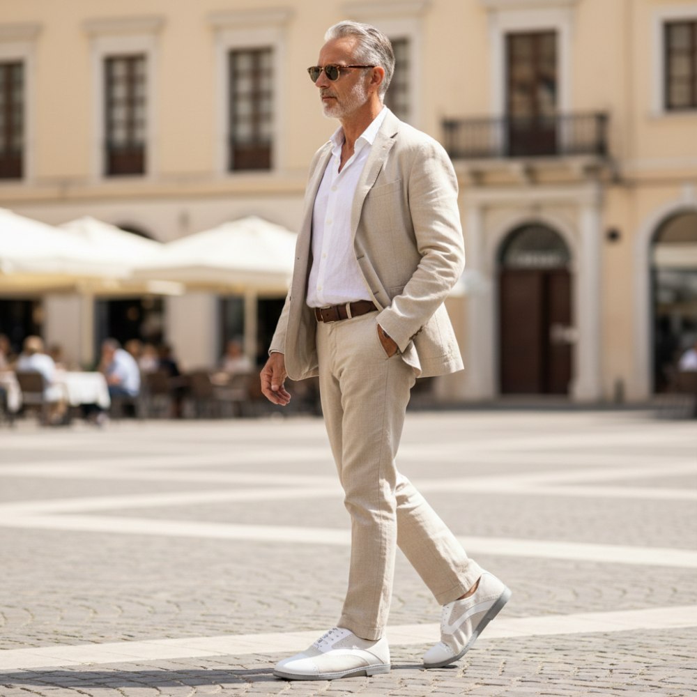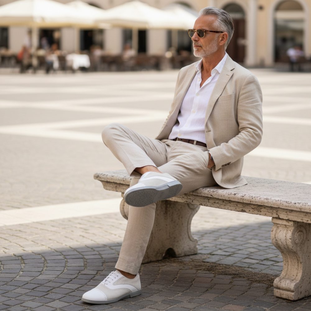 V bielej verzii sa náš Qentle vyzerá dvakrát elegantne a dokonale zapadá do celého leta. Čiary vyrobené zo snehobielej kože nappa a svetlo šedého semišu vizuálne rozširujú obuv na bosú bosú. Toto je zakončené jemnými broguingmi pozdĺž švov.