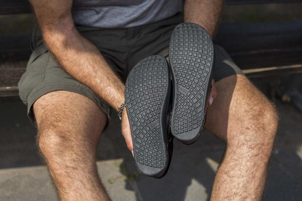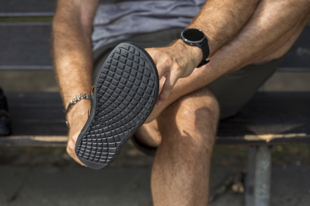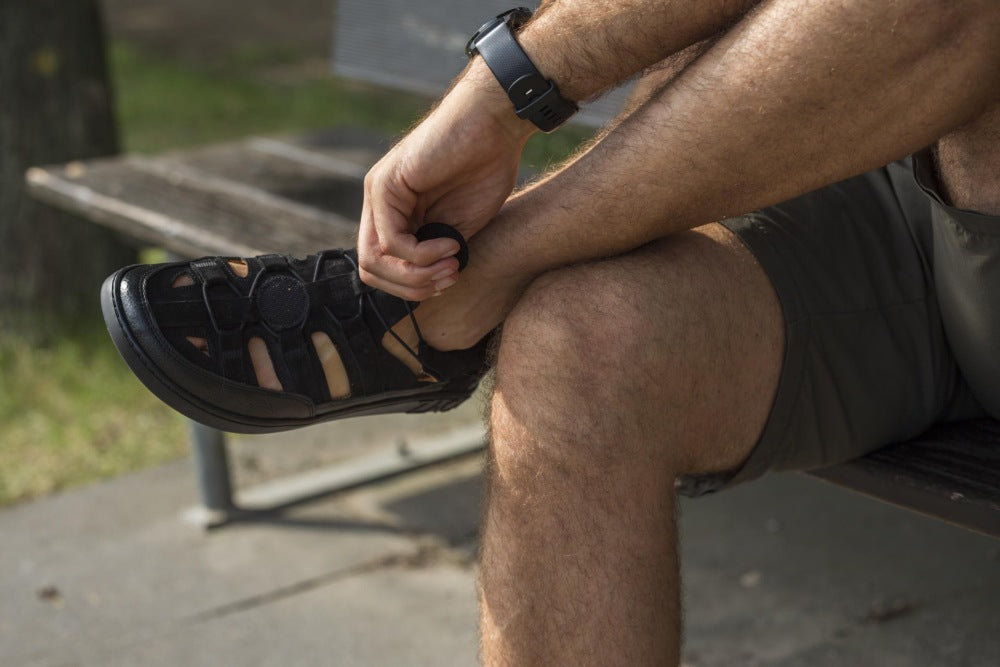 Die Elastikbänder kannst Du ruckzuck auf- und zumachen, um blitzschnell rein- und rauszuschlüpfen. Sie sorgen aber auch für den optimalen Halt in dem Outdoor-Barfußschuh.