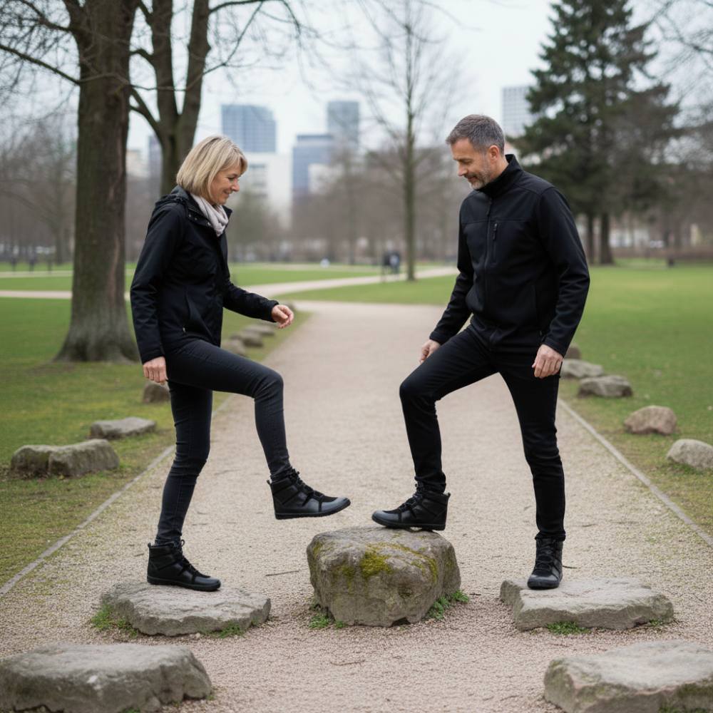 - Vonkajšia gumová podrážka s nulovým pätom, čím sa zbavuje chrbtice a chráni kĺby, podporuje prirodzené držanie tela