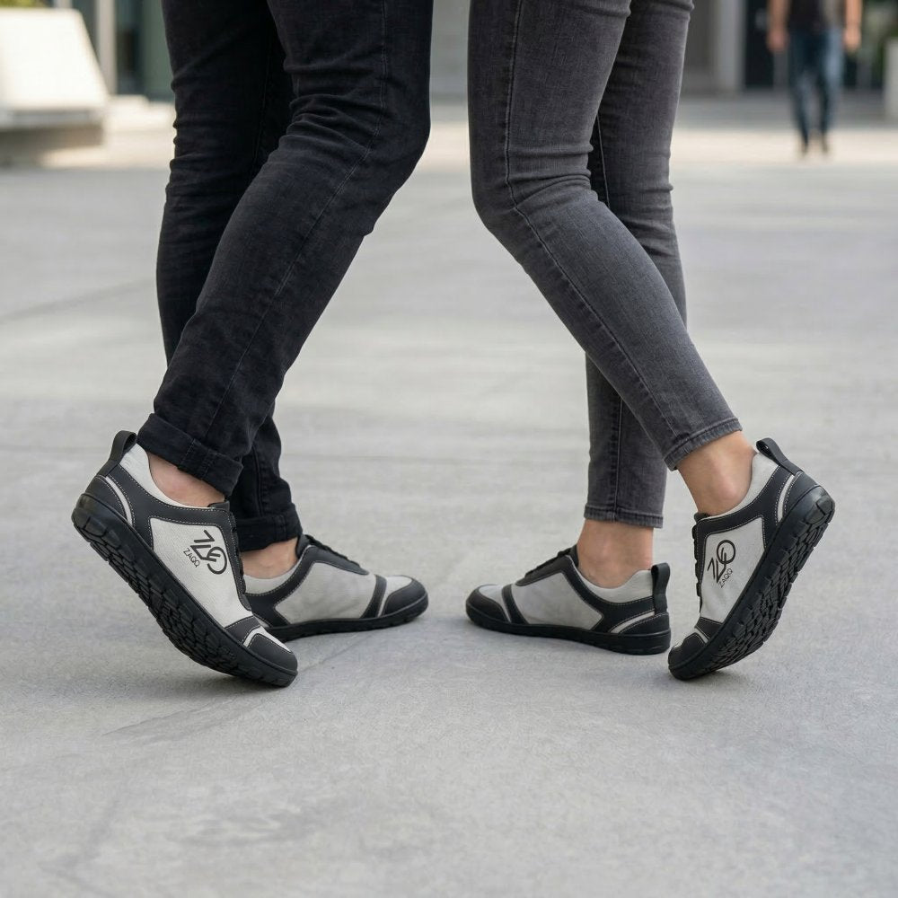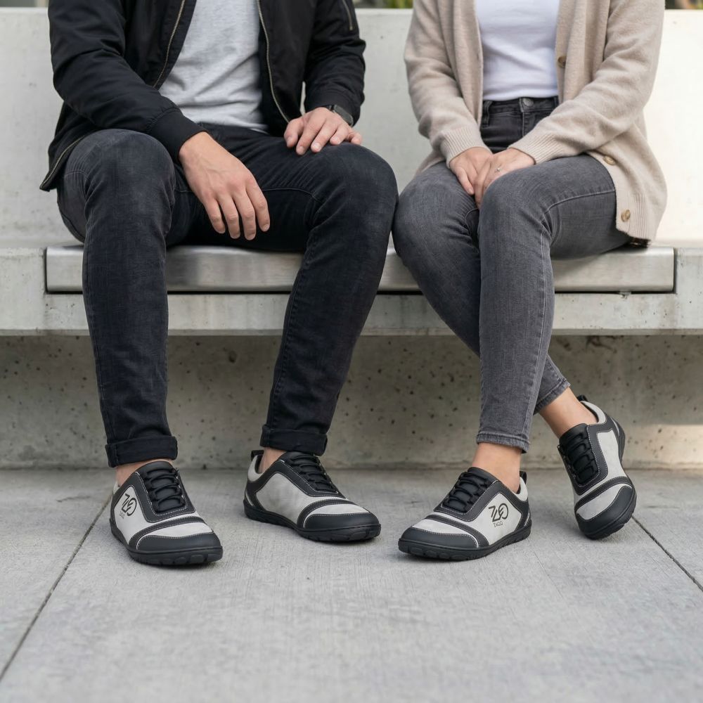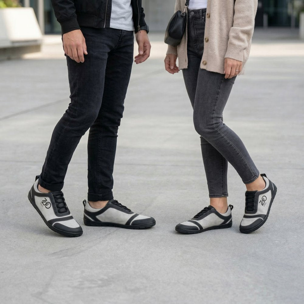 Náš SQill je perfektný ako bosá bežecká topánka, pretože je super svetlo a s kombináciou vegánskeho mikrovlákna a tenká vnútorná podšívka je obzvlášť priedušná. Vďaka asymetrickému strihu tejto topánky naboso z neho robí jemný očný chatter. Vďaka svojim jednoduchým farbám vyrobeným z čiernej a svetlo šedej vyzerá nielen dobre v športe, ale aj ako teniska v každodennom živote.