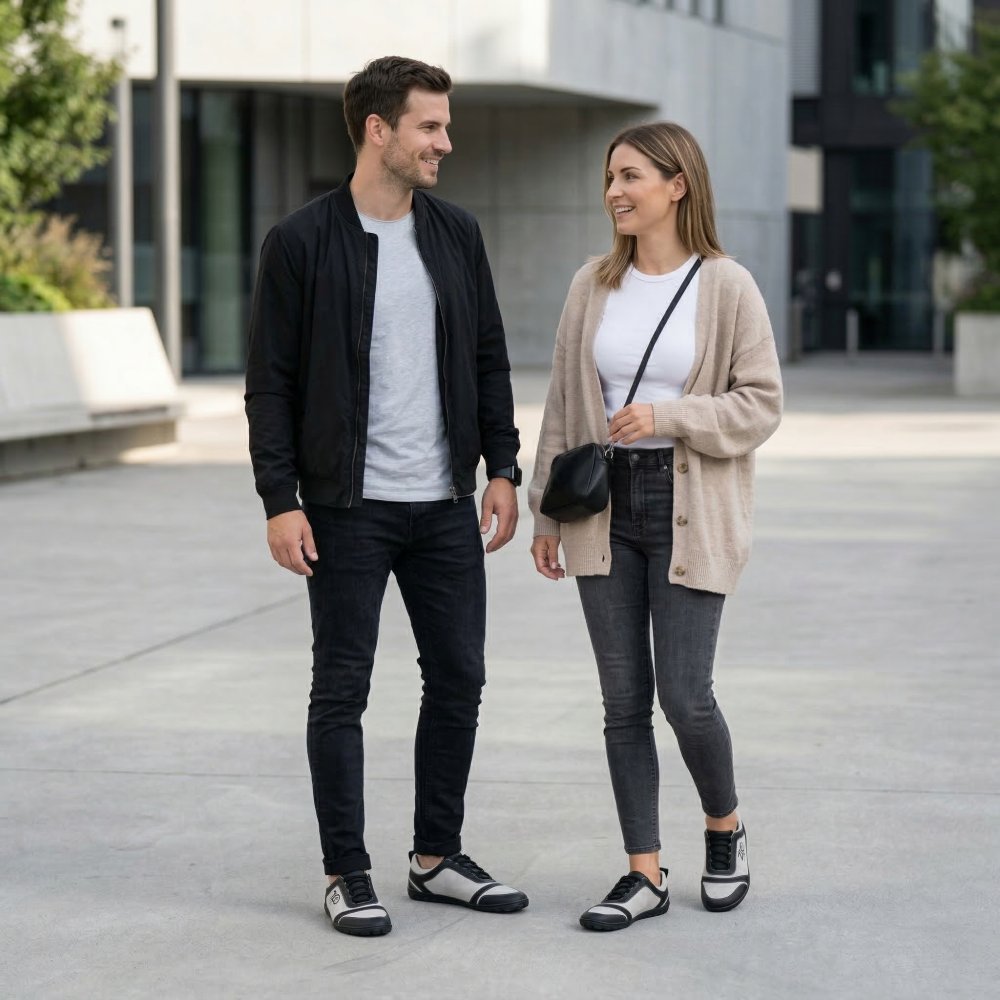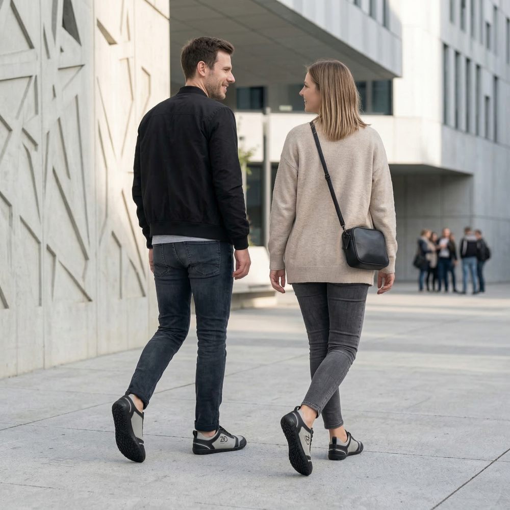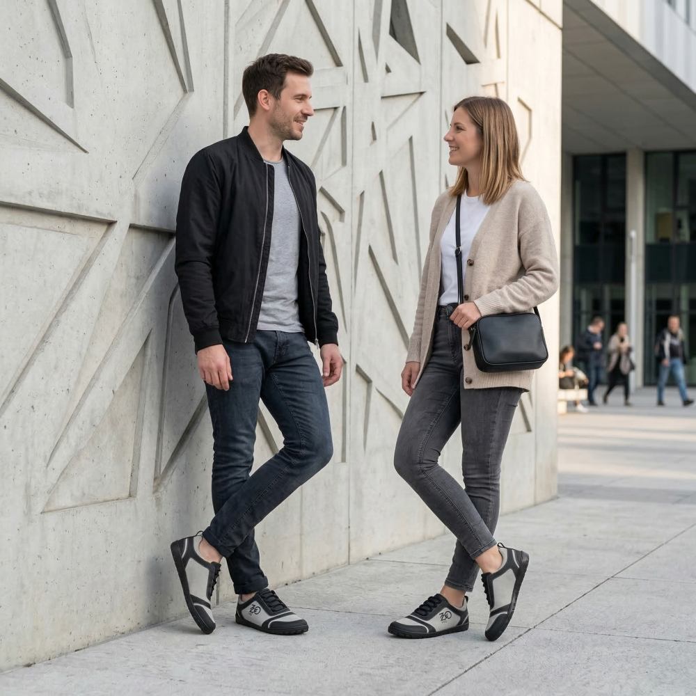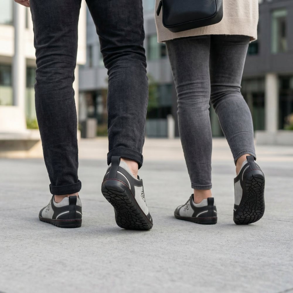 Náš SQill je perfektný ako bosá bežecká topánka, pretože je super svetlo a s kombináciou vegánskeho mikrovlákna a tenká vnútorná podšívka je obzvlášť priedušná. Vďaka asymetrickému strihu tejto topánky naboso z neho robí jemný očný chatter. Vďaka svojim jednoduchým farbám vyrobeným z čiernej a svetlo šedej vyzerá nielen dobre v športe, ale aj ako teniska v každodennom živote.