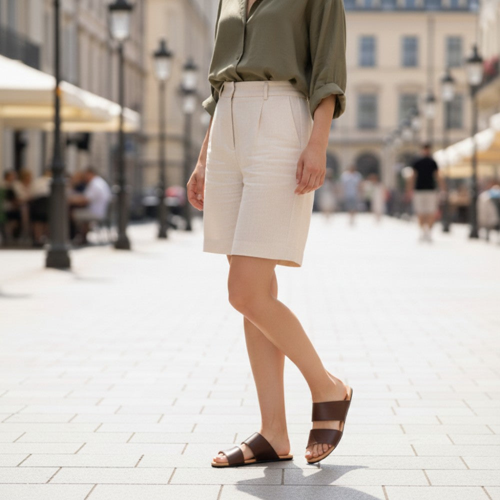 Tieto sandále vyrobené z mäkkej hnedej kože napa, ponúkajú nadčasový vzhľad, ktorý sa dá ľahko kombinovať s rôznymi odevmi.