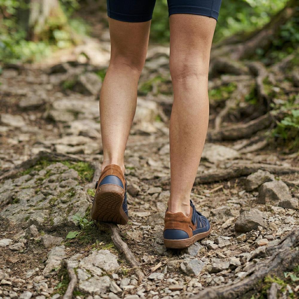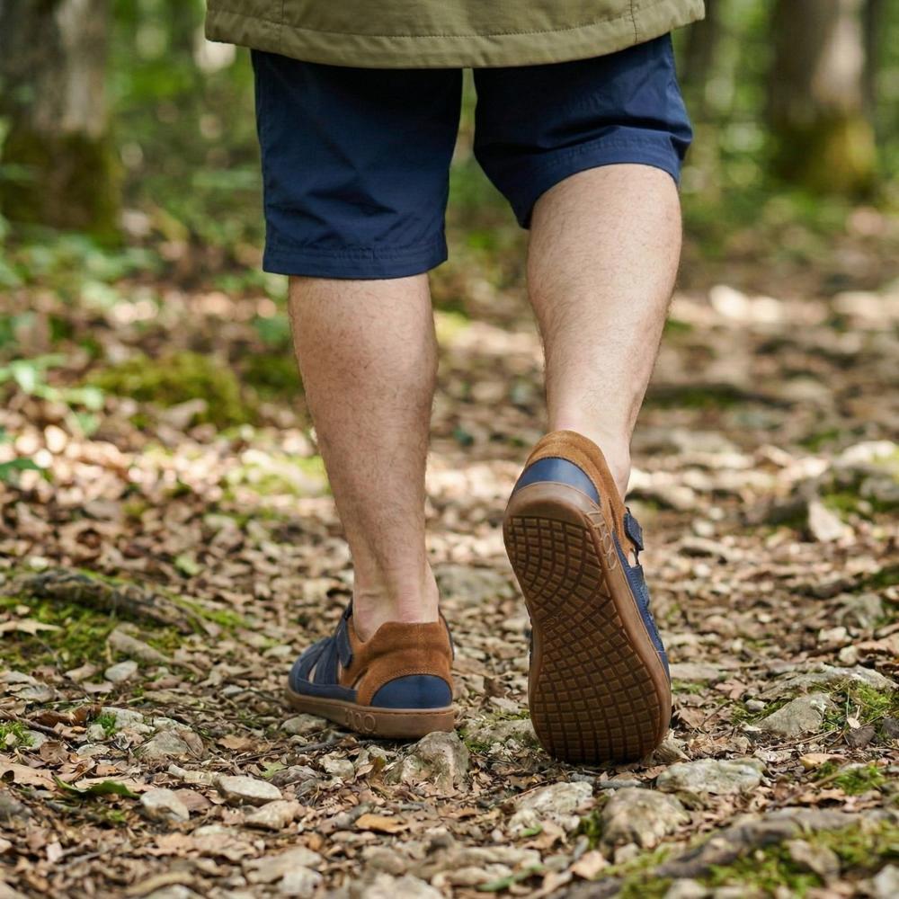Vonkajšia gumová podrážka s nulovým pätom, čím sa zbavuje chrbtice a chráni kĺby, podporuje prirodzené držanie tela