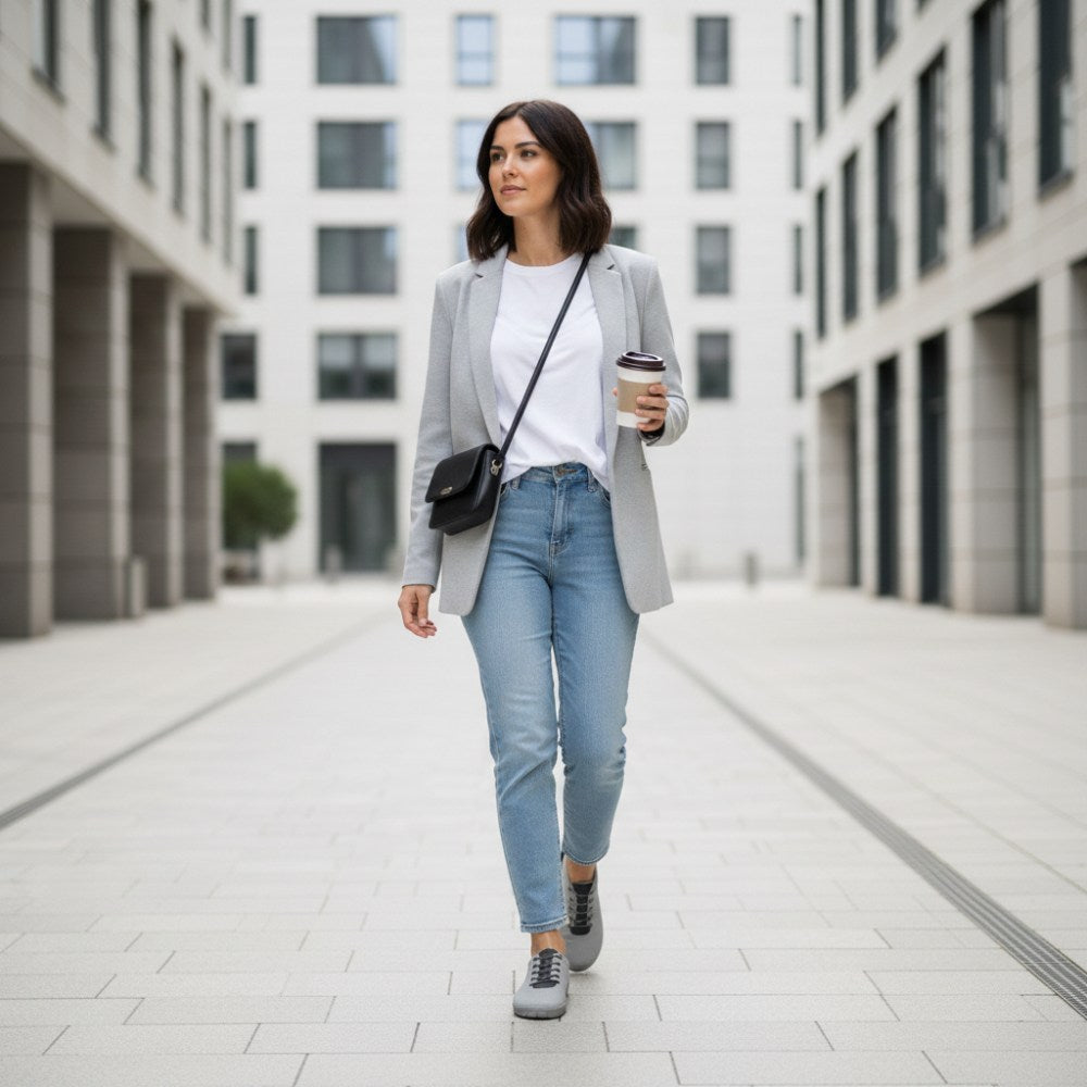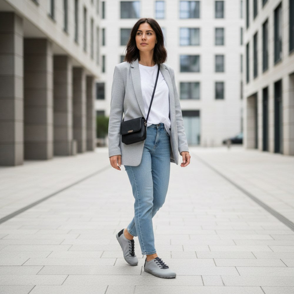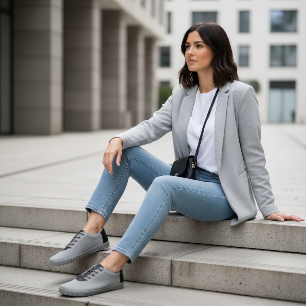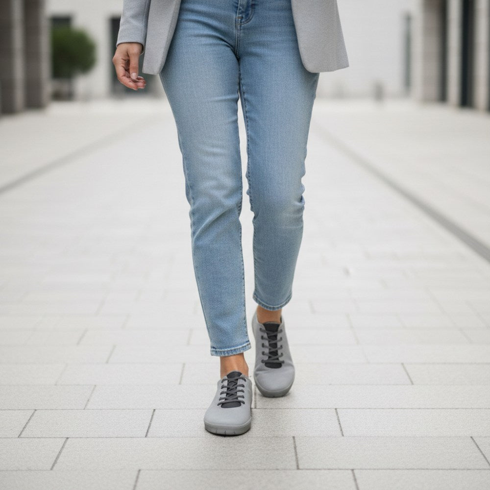 Bežný pocit v tejto teniske je jednoducho jedinečný. Raz v tom čase je zaručené, že ho nikdy nechcete vrátiť. Rovnako ako u všetkých našich topánok naboso, aj dizajn je dobre premyslený zhora nadol a navrhnutý takým spôsobom, že sa všetko perfektne hodí. Vaša noha má dostatok priestoru v topánke cez veľkú škatuľu na nohách a široký strih. V súvislosti s tenkou bosou podrážkou je neuveriteľné pohodlie. Šedá teniska je super ľahká a mega zohľadnená.