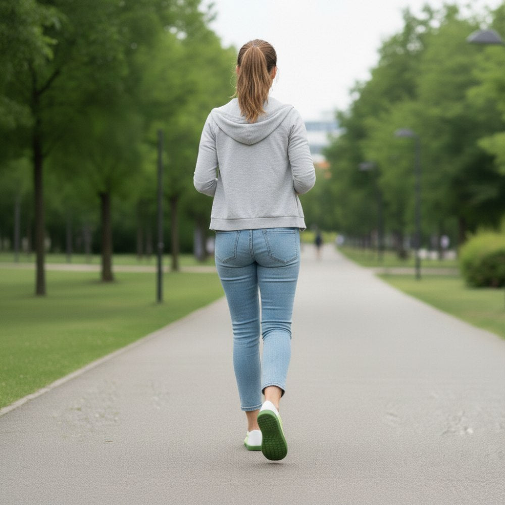 Gumová podrážka s nulovým pätom, čím sa zmierňuje chrbticu a chráni kĺby, podporuje prirodzené držanie tela