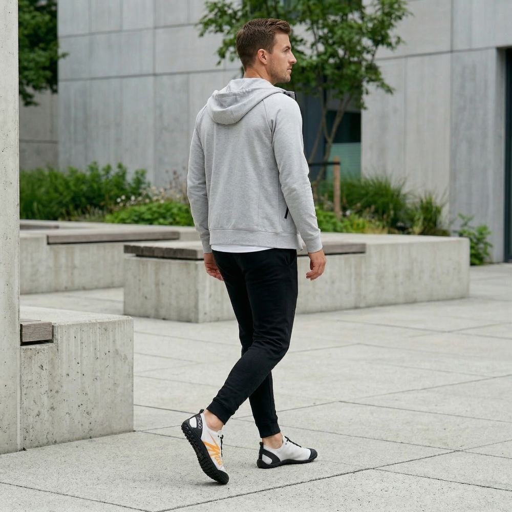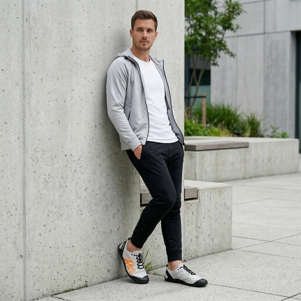 SQIM Gray Orange je perfektná bosá topánka pre moderných pánov, ktorí si cenia maximálne pohodlie a udržateľnosť.